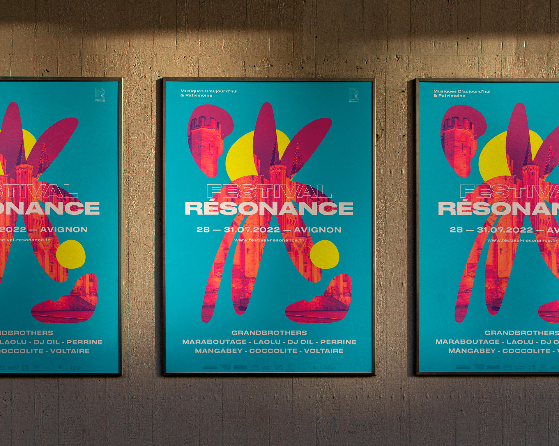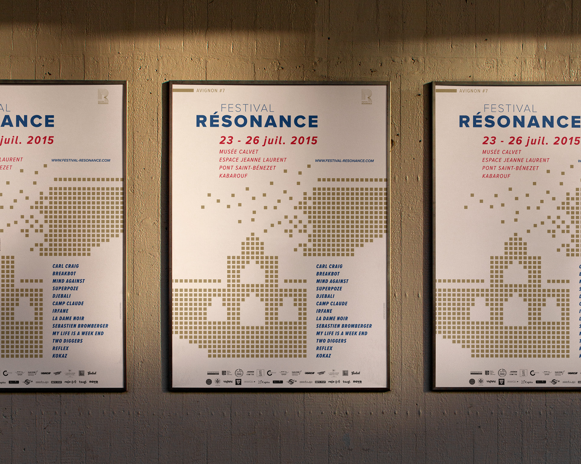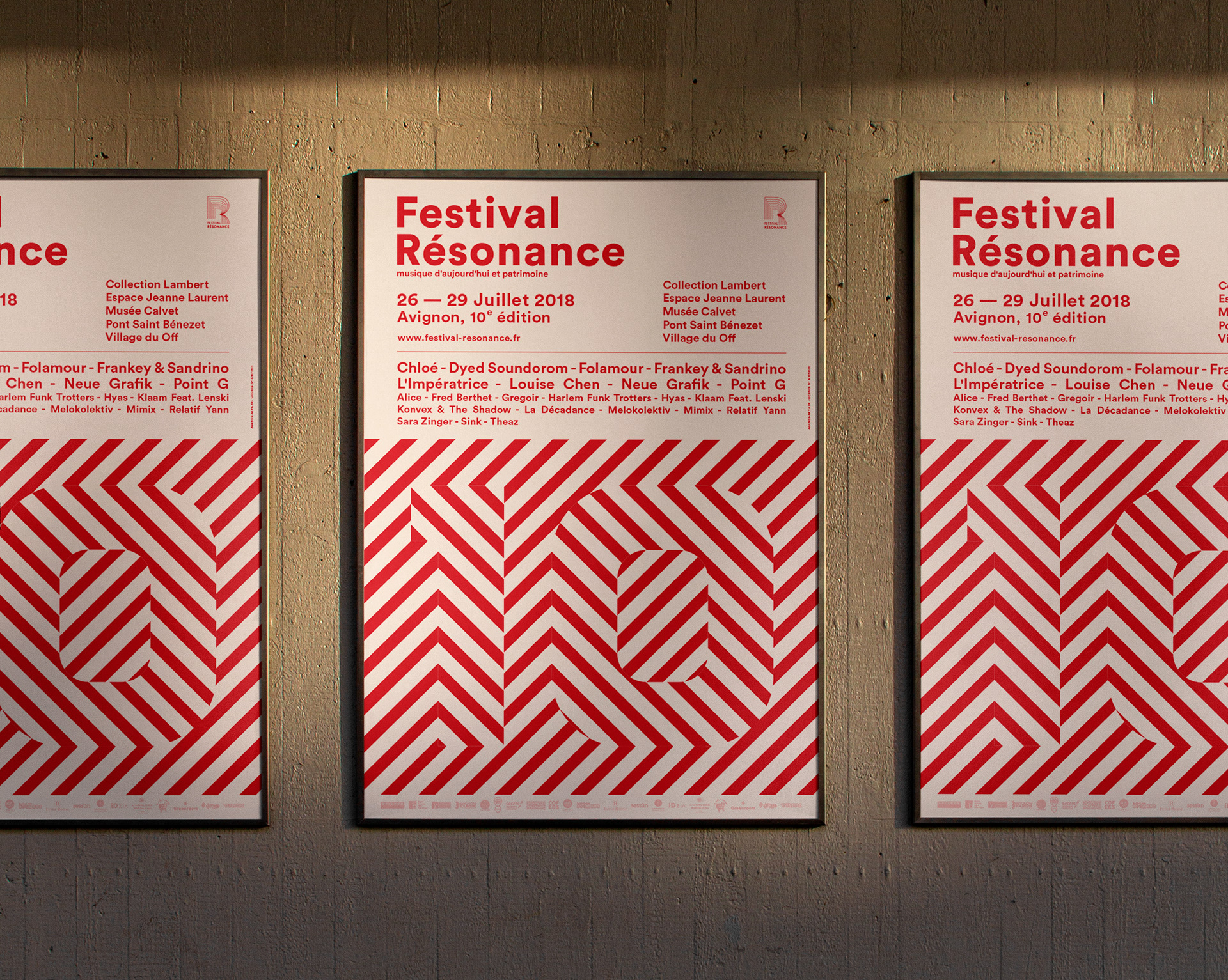 Rétrospective condensée des affiches représentant les identités visuelles réalisées pour le festival depuis 2015.